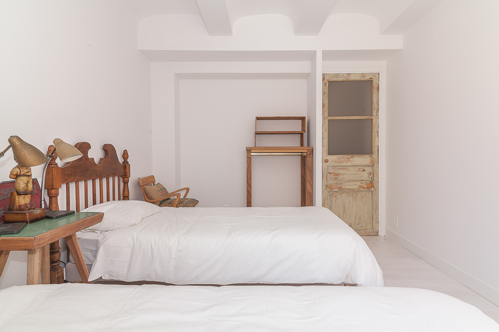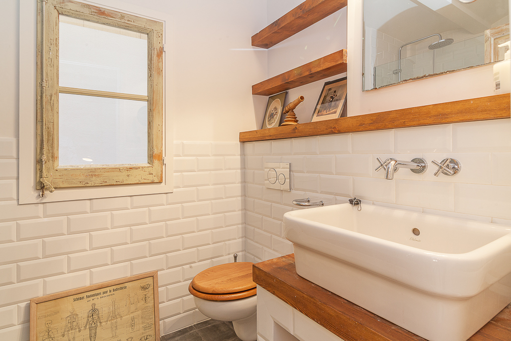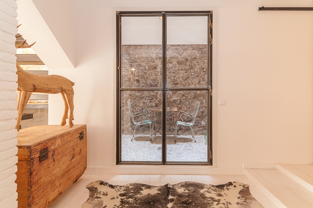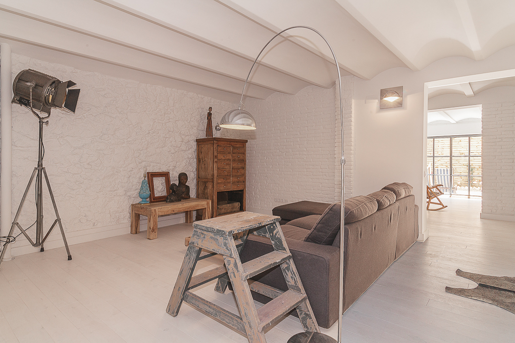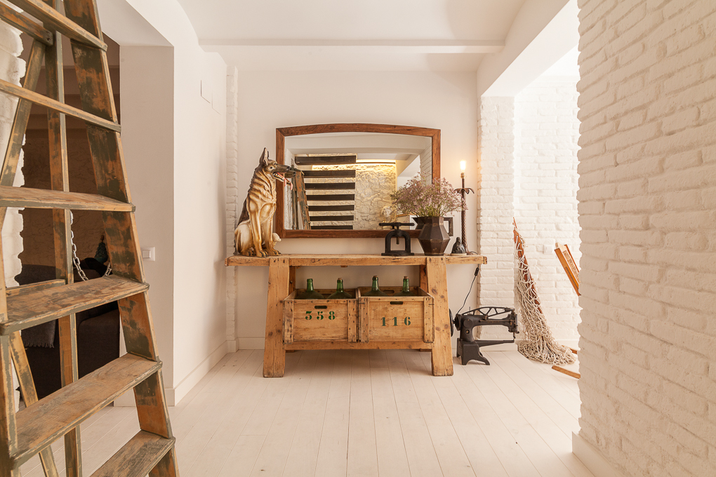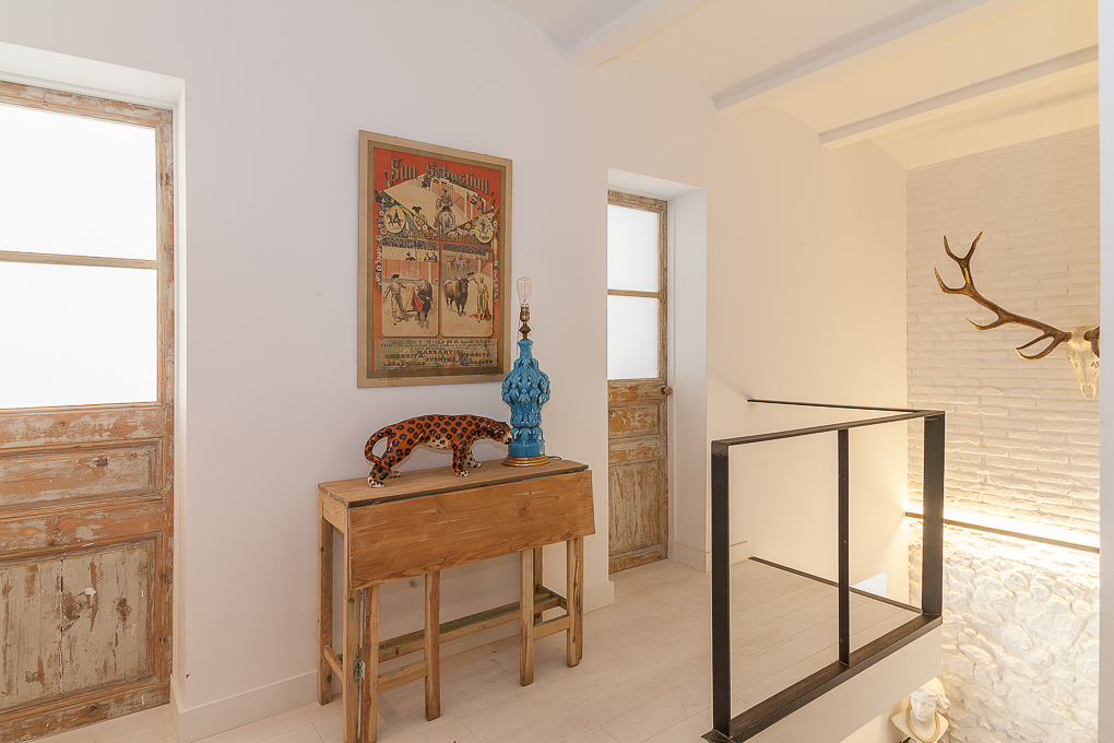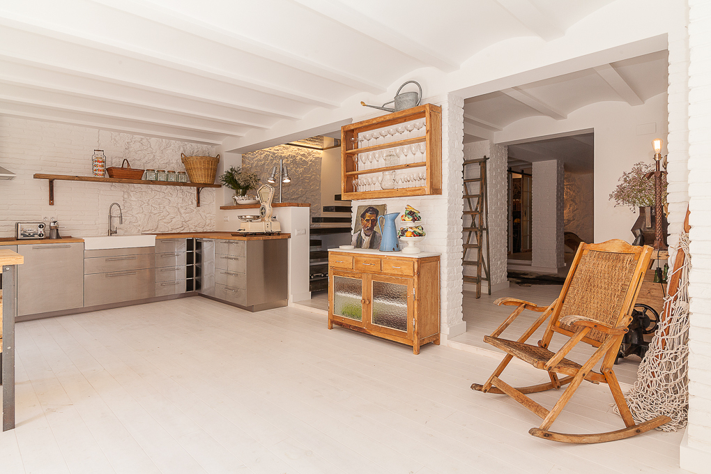 La vivienda conserva una estructura tradicional de muros portantes y forjados de viguetas vistas, que se han dejado al descubierto para resaltar su carácter original. La intervención se centra en potenciar esa base estructural mediante una distribución abierta que favorece la amplitud y la entrada de luz natural. Los muros de ladrillo visto pintados de blanco se combinan con elementos de madera en estado natural, aportando textura y calidez sin perder sencillez. Soluciones como las puertas correderas permiten una mayor flexibilidad en el uso de los espacios, mientras que los acabados neutros contribuyen a crear un ambiente sereno y funcional.
