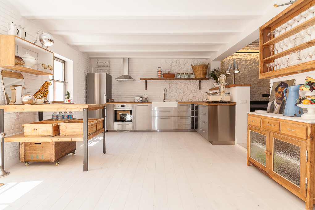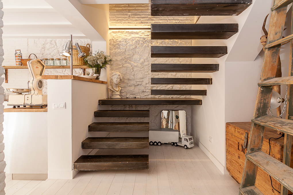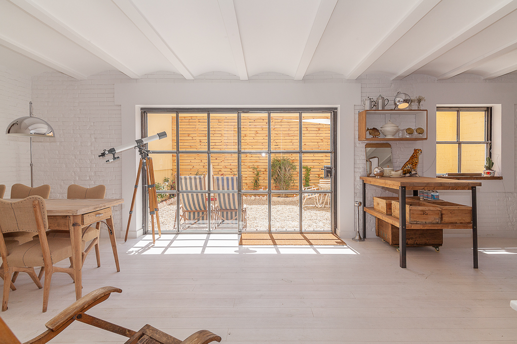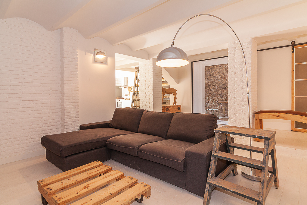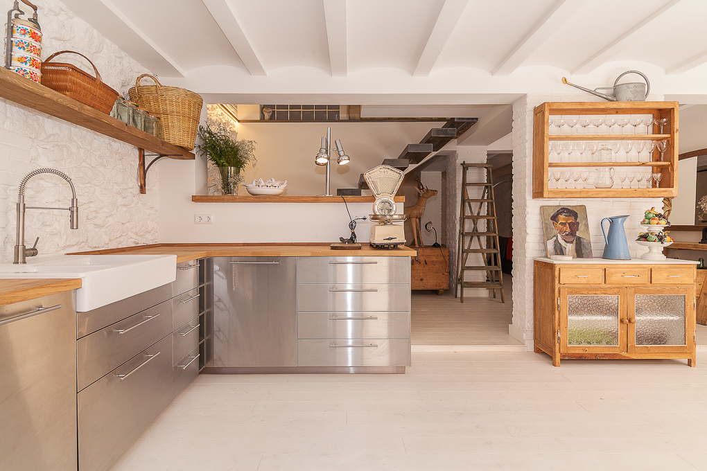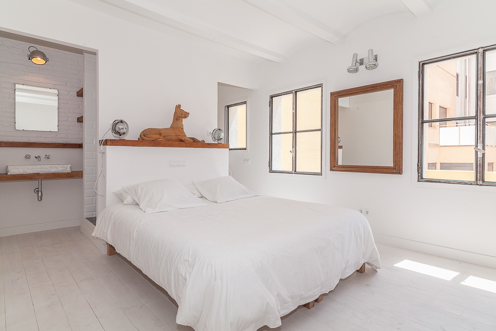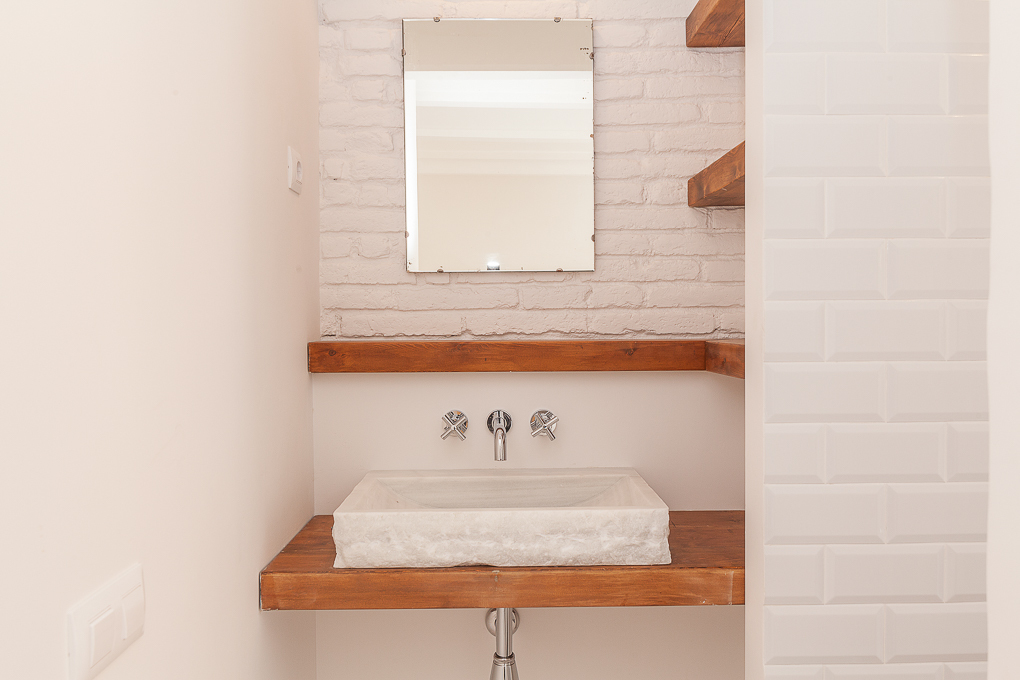 La vivienda conserva una estructura tradicional de muros portantes y forjados de viguetas vistas, que se han dejado al descubierto para resaltar su carácter original. La intervención se centra en potenciar esa base estructural mediante una distribución abierta que favorece la amplitud y la entrada de luz natural. Los muros de ladrillo visto pintados de blanco se combinan con elementos de madera en estado natural, aportando textura y calidez sin perder sencillez. Soluciones como las puertas correderas permiten una mayor flexibilidad en el uso de los espacios, mientras que los acabados neutros contribuyen a crear un ambiente sereno y funcional.