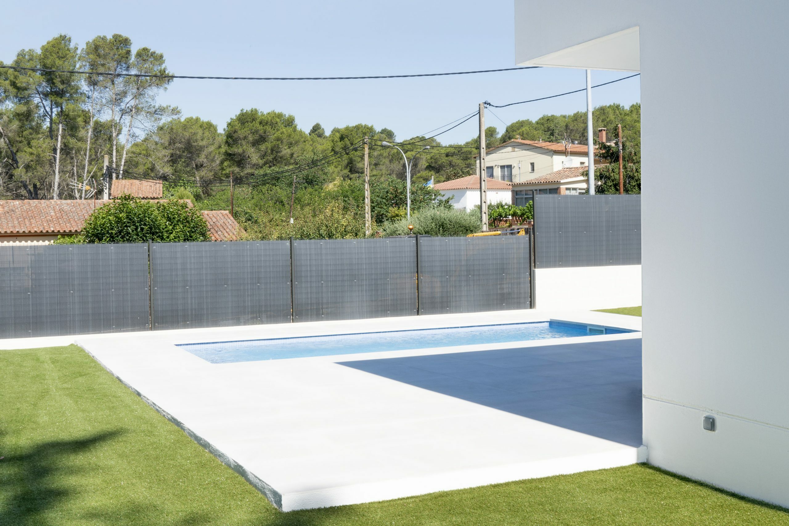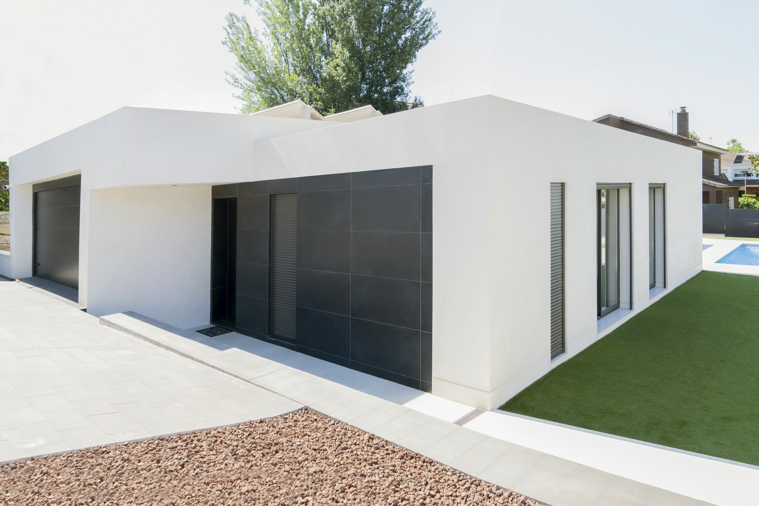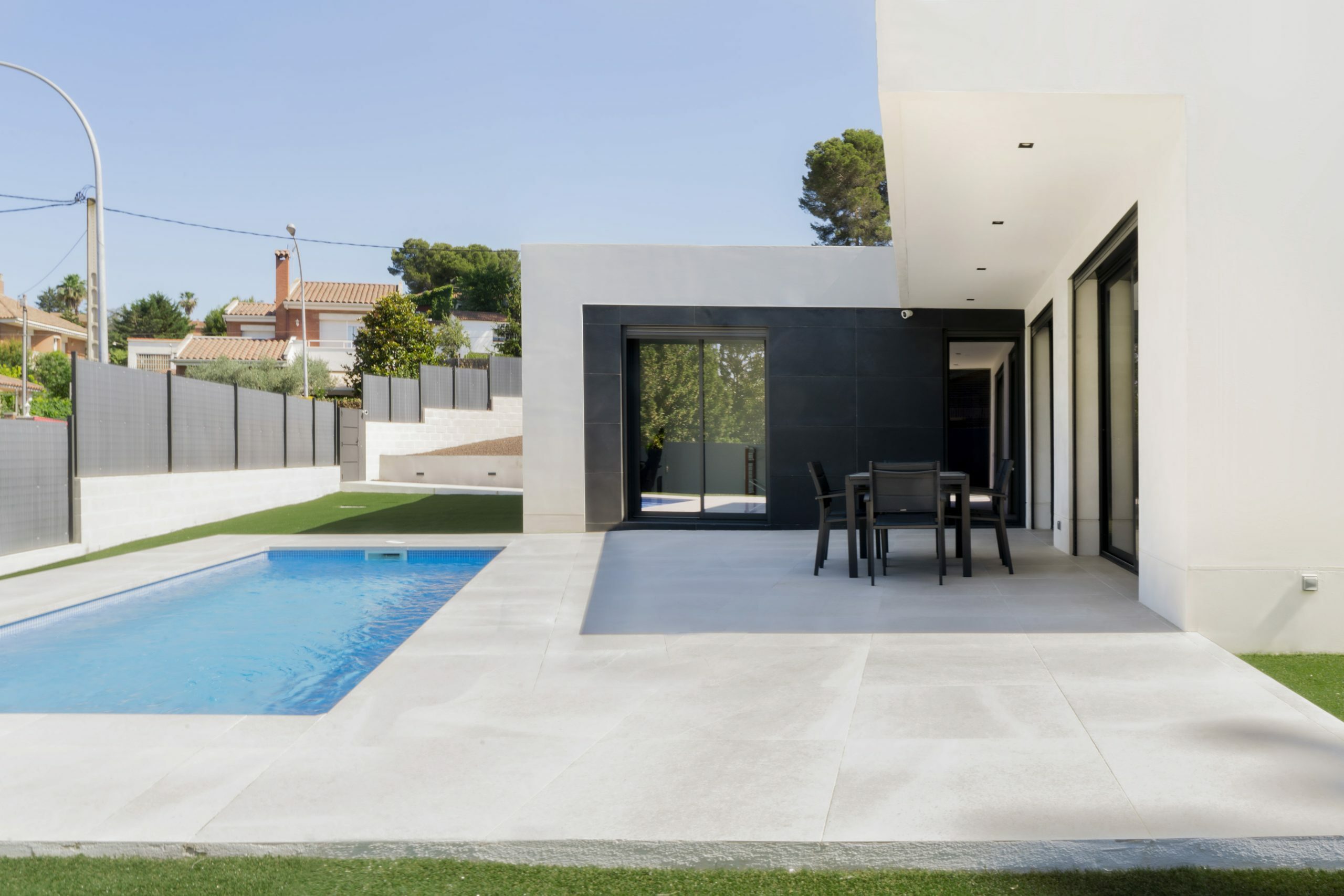 Esta vivienda unifamiliar destaca por su arquitectura contemporánea de líneas rectas y volúmenes bien definidos. El juego de volúmenes y los contrastes entre materiales hacen que esta vivienda tenga una estética equilibrada y moderna. La combinación de tonos blancos con detalles en negro aporta un carácter elegante y atemporal. El diseño de la piscina y su integración con el pavimento refuerzan el concepto de continuidad visual entre los espacios. Cada elemento ha sido pensado para aportar funcionalidad y diseño, sin perder la armonía con el paisaje. Un diseño pensado para adaptarse al entorno y maximizar la luz natural.